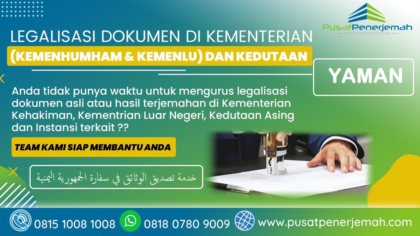 Jasa Legalisasi Atestasi Pengesahan Dokumen di Kedutaan Yaman di Jakarta Indonesia