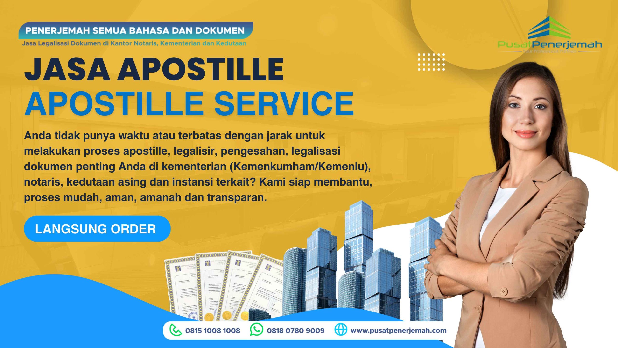 Jasa ini menyediakan layanan penerjemahan dokumen oleh penerjemah tersumpah serta legalisasi atestasi apostille dokumen agar memenuhi standar hukum Perancis. Proses ini mencakup penerjemahan dari bahasa Indonesia ke dalam bahasa Perancis, pengesahan di Kementerian Hukum dan HAM – Kemenkumham Republik Indonesia.