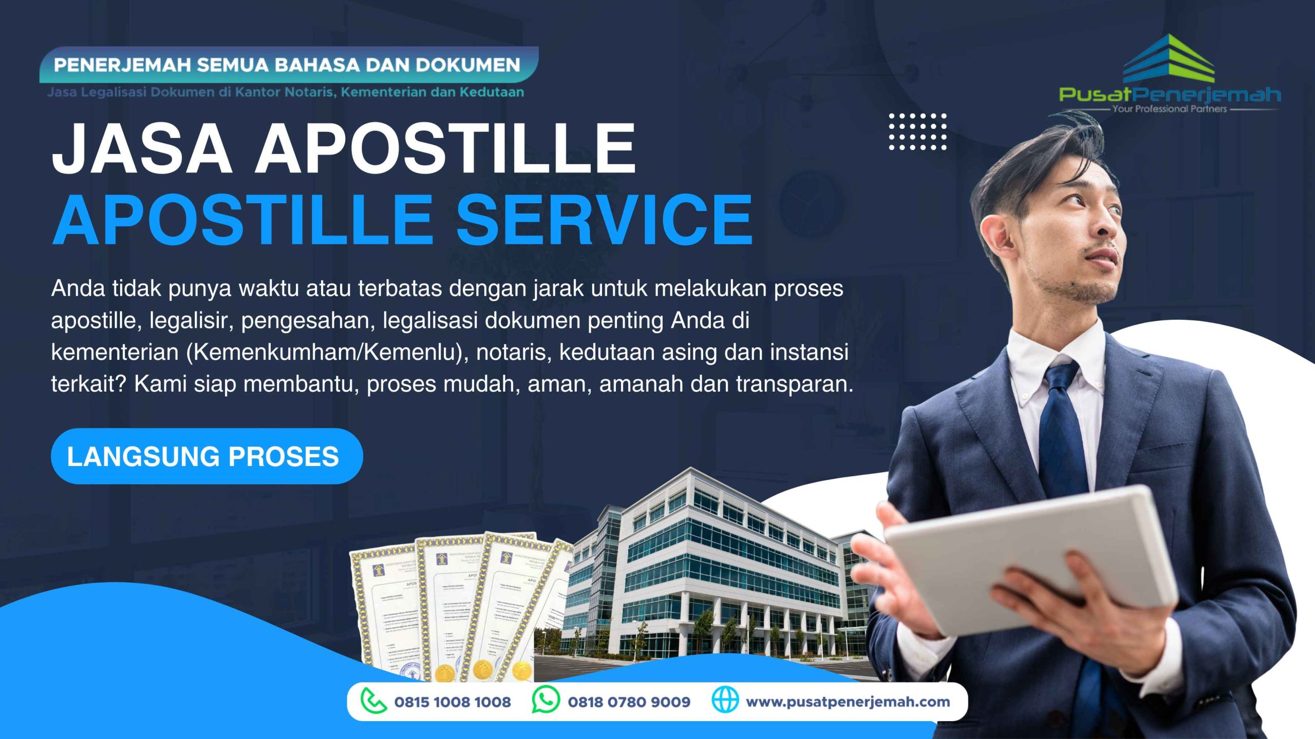 Jasa ini menyediakan layanan penerjemahan dokumen oleh penerjemah tersumpah serta legalisasi atestasi apostille dokumen agar memenuhi standar hukum di Republik Ceko. Proses ini mencakup penerjemahan dari bahasa Indonesia ke dalam bahasa Ceko, Polandia, Inggris atau lainnya, pengesahan di Kementerian Hukum dan HAM – Kemenkumham Republik Indonesia.