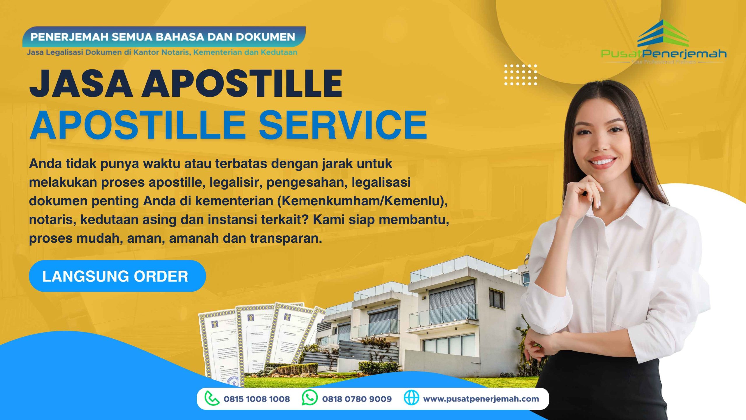 Jasa ini menyediakan layanan penerjemahan dokumen oleh penerjemah tersumpah serta legalisasi atestasi apostille dokumen agar memenuhi standar hukum Spanyol. Proses ini mencakup penerjemahan dari bahasa Indonesia ke dalam bahasa Spanyol, pengesahan di Kementerian Hukum dan HAM – Kemenkumham Republik Indonesia.