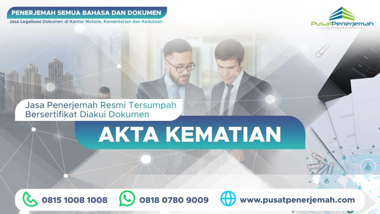 Pusat Penerjemah membantu bagi para profesional, pebisnis, pemilik perusahaan dan pengusaha dalam menerjemahkan akta kematian mereka untuk dapat digunakan berbagai kepenting dalam dalam dan luar negeri.